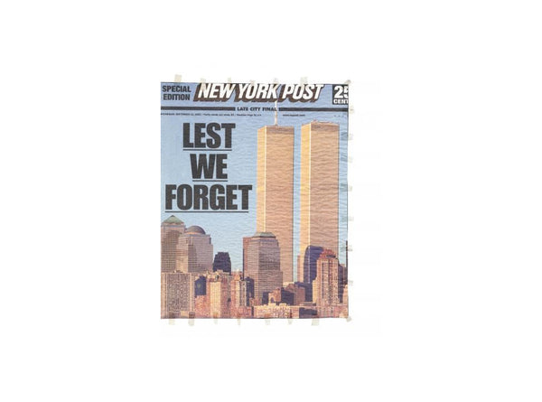 In the NEW YORK POST Flag Profile, all of the American flags from the NEW YORK POST issued on the first anniversary of September 11, 2001, have been cut out and pasted into a newspaper with everything else left blank. The flag depictions are cut out and inserted into the pages in such a way, that the verso of the fragments is also visible.