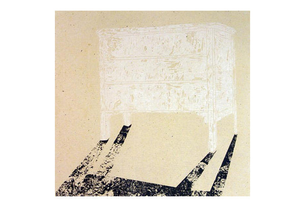 This print is part of a new series of prints depicting household furniture. The white chest of drawers is a woodcut taken from an ikea shelf which I carved into. The shadow part is made up of texture from a wall in the forbidden city in Beijing. Both the visual imagery used in the print, and the methods with which it was created, invite the viewer to think about ideas of home.